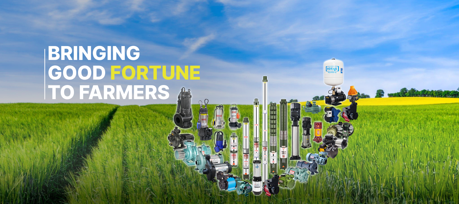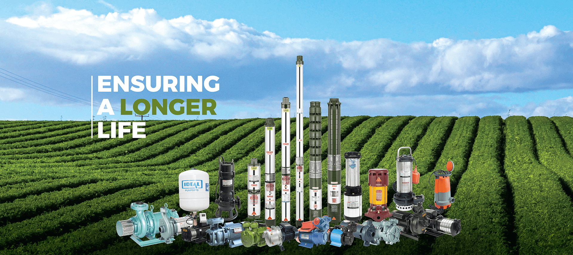 IDEAL Agriculture Submersible pumps, Open well pumps and surface Monoblock pumps are robust, sturdy in design, rugged in construction and are well designed for high life, reliability and efficiency.